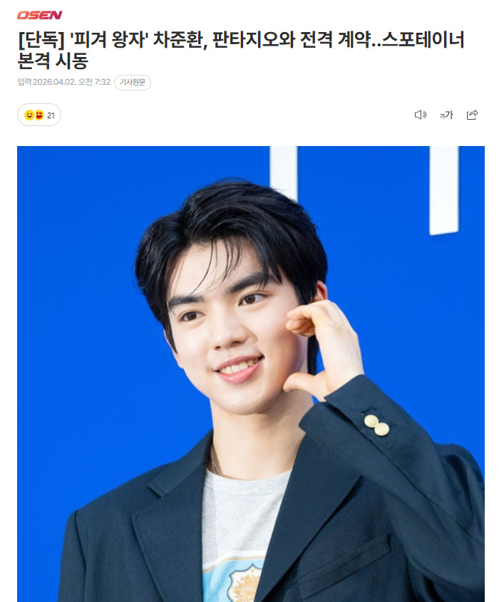 据悉,王车他此次选择加入的俊焕并非体育所属社,“韩国花样滑冰的签订招牌明星”车俊焕最近与Fantagio签订了专属合约,最引人注目的专属是,在寻找所属社的花滑合约过程中选择与Fantagio携手合作。而与演艺专业所属社签订专属合约尚属首次。王车他曾在知名运动员所属的俊焕体育所属社旗下进行活动,此前,签订